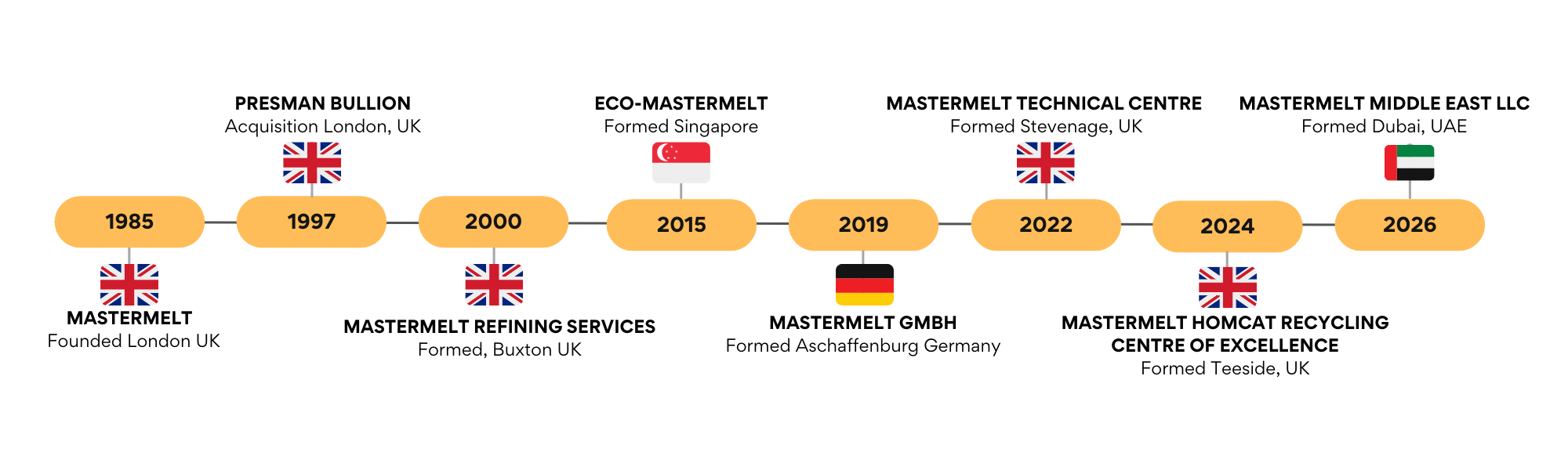 For over four decades, Mastermelt Group has been a trusted global leader in the recovery and recycling of precious metals, combining industrial expertise with a deep commitment to sustainability. Established in 1985, the Group operates state-of-the-art facilities across the UK, Germany, Singapore and The UAE, delivering high-value reclamation and refining services to industries ranging from pharmaceuticals, electrochemicals, automotive, green energy, petrochemicals and jewellery. With nearly 40 years of continuous innovation, Mastermelt has built a reputation for technical excellence, transparency, and environmental responsibility — helping manufacturers and processors around the world turn complex waste streams into valuable, reusable resources. Through its ongoing investment in advanced technology and sustainable practices, Mastermelt continues to strengthen the global circular economy and redefine standards for responsible precious-metal recovery.